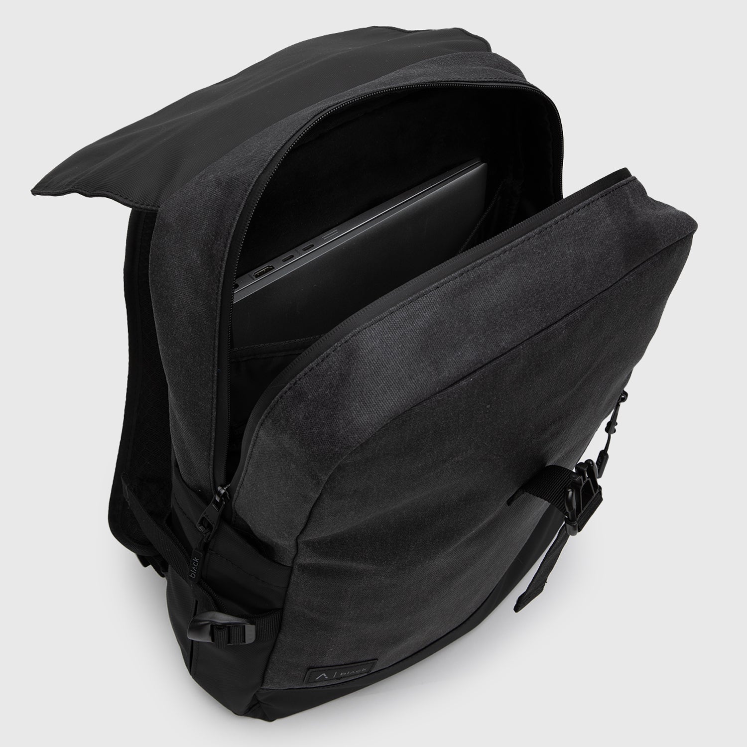 Mochila urbana y versátil, confeccionada con exterior en 50% poliéster y 50% algodón, e interior 100% poliéster. Cuenta con compartimiento acolchado para laptop de hasta 16”, bolsillos laterales elasticados ideales para botellas Black de 750 ml y bolsillo frontal de rápido acceso. Su cierre waterproof la hace perfecta para la oficina o la universidad, combinando funcionalidad y estilo.