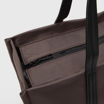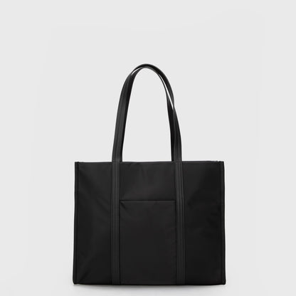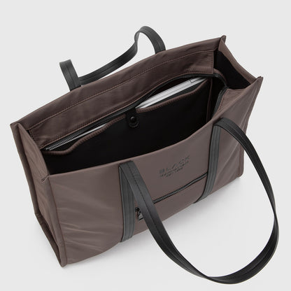 Tote versátil y moderno, confeccionado en materiales resistentes. Incorpora un bolsillo frontal con cierre y uno trasero sin cierre de fácil acceso. En su interior cuenta con compartimiento para computador de hasta 13” y bolsillo interno con cierre. Perfecto para la oficina, la universidad o planes urbanos.