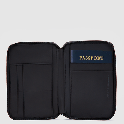 Guarda tu pasaporte y elementos esenciales de viaje de manera eficiente el WOLF Passport Holder. Con un cierre resistente para evitar que se caigan tus pasaportes, documentos de viaje y tarjetas. Simplemente guarda tus boletos de avión en el bolsillo delantero y estarás listo para abordar el avión.